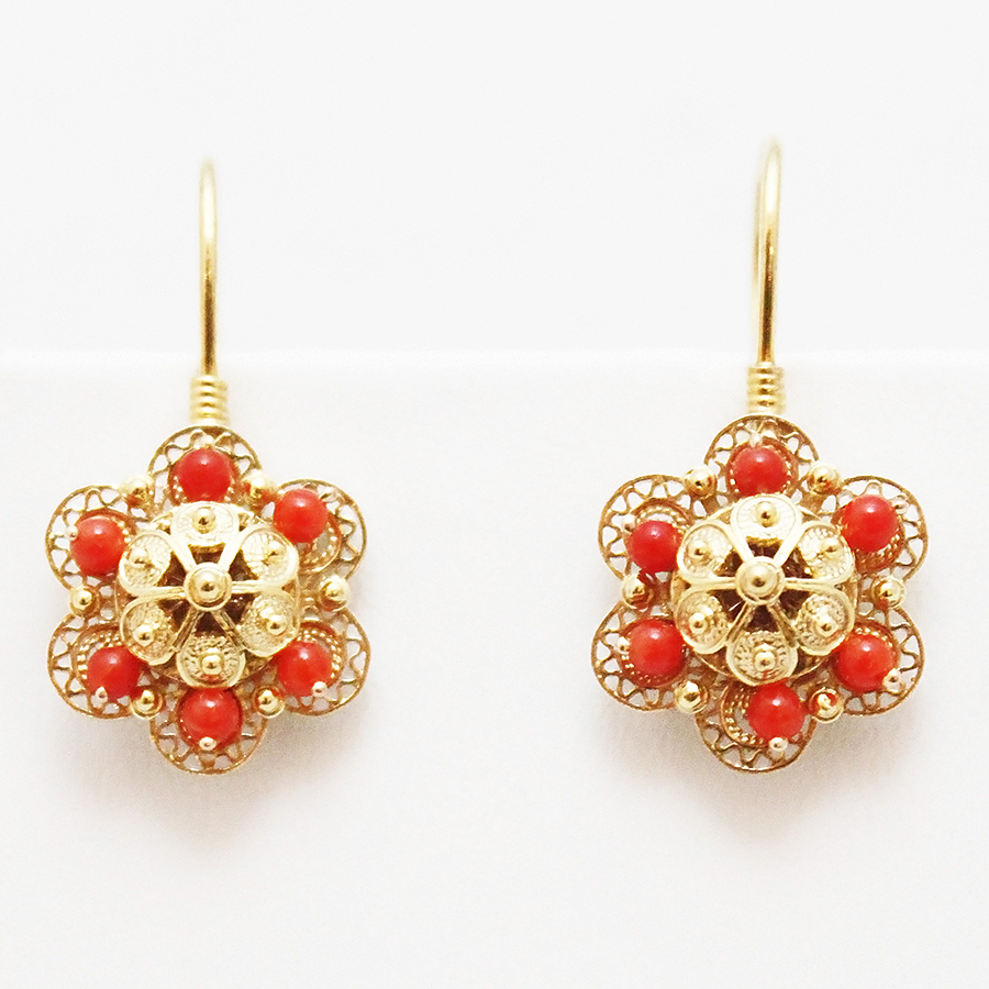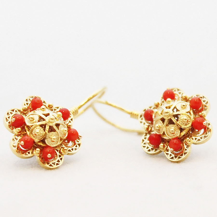 Traditional dalmatian gold earrings with corals.