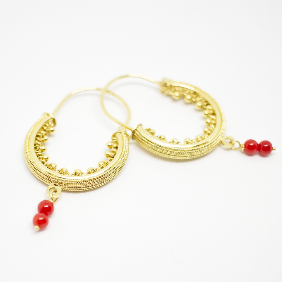 Replica of gold Konavle earrings is available in various sizes with pearls or corals.