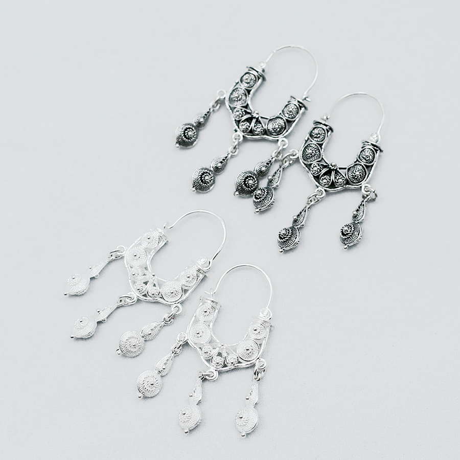 Replika paških naušnica, izvorno “ročini”,  izrađena od srebra. Proizvod je dostupan u više veličina.